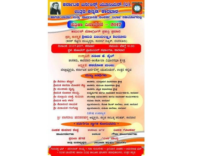 ಕಾರವಾರ : ಕರ್ನಾಟಕ ಜರ್ನಲಿಸ್ಟ್ ಯೂನಿಯನ್ (ರಿ) ಉತ್ತರ ಕನ್ನಡ ಘಟಕವು ಜುಲೈ 1 ಶನಿವಾರ ಮುಂಜಾನೆ 10.30ಕ್ಕೆ ನಗರದ ಪ್ರಿಮಿಯರ್ ...